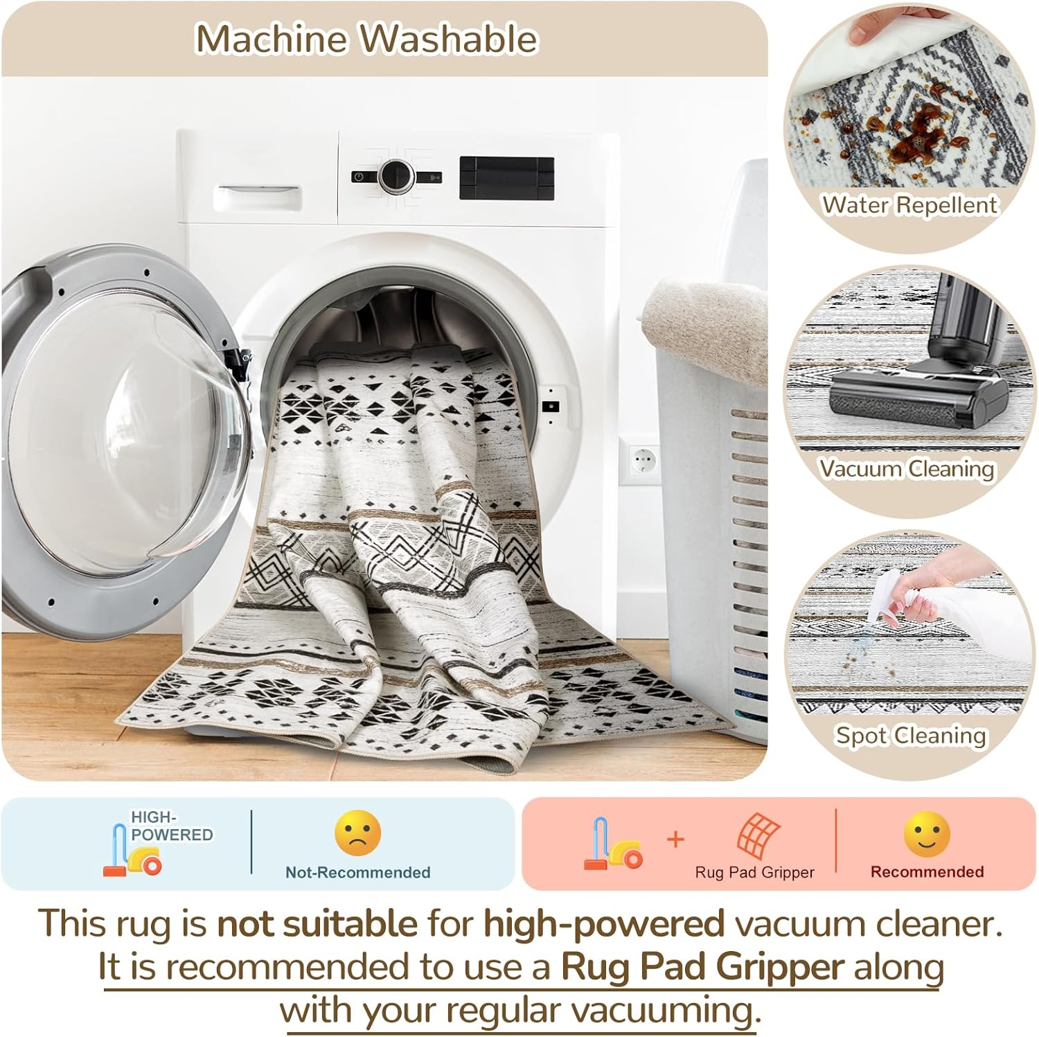 BESTSWEETIE 8x10 Area Rugs for Living Room Washable Moroccan Farmhouse Neutral Geometric Low Pile Non-Slip Soft Print Pattern Rug for Bedroom Kitchen Dining Room Entryway Black/Brown